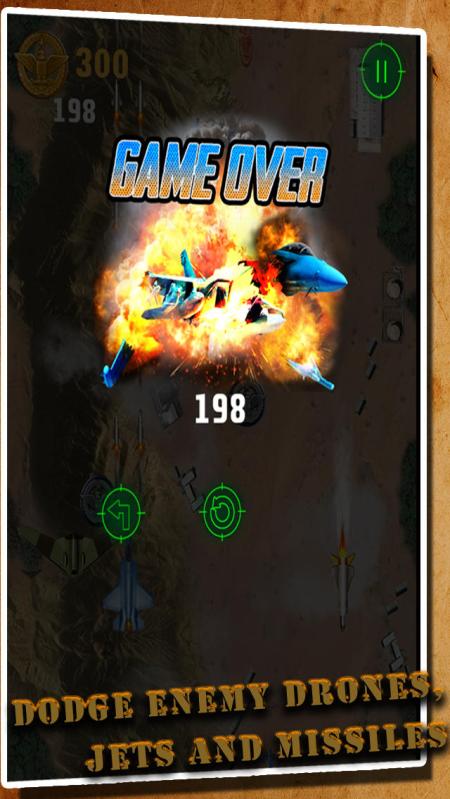 《喷气式战机 Air Drone Combat》是一款挑战自我的飞行射击类游戏。进入游戏,有3款战机共玩家选择,分别为F16、F22和F35。游戏采用触屏操作,按住随意一个地方,左右移动,便可自动攻击敌人发射子弹攻击迎面飞来的无数敌机。随着你驾驶技术的提高,游戏的挑战也越来越大。快来下载体验吧!