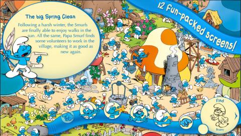 In Smurfs’ Hide and Seek with Brainy, players search through vibrant and colorful hidden object scenes for items such as Brainy Smurf, caterpillars, and other urfy objects. Players collect check marks to complete each section. If players become stuck they can sneak up to three peeks to help them progress. The game’s refresh option makes it easy for the entire family to enjoy.