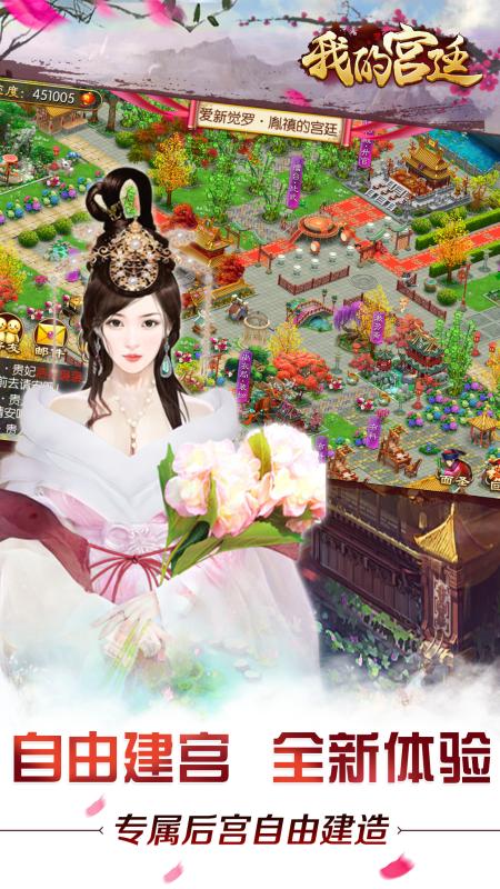 【游戏简介】 千载宫闱深,独泣羽巾陶。一入宫门深似海!游戏果动首款宫廷手游《我的宫廷》诚邀各位小主开启您的宫廷之旅! 《我的宫廷》是首款DIY自主养成经营类古风宫斗回合制类手游,游戏以自由建城的养成经营类玩法为特色,依托古色古香的唯美宫廷世界为背景。炫美的时装,精彩宫斗剧情,惊心动魄的后宫争斗,将给玩家带来超爽别样的宫廷生活体验。 模拟经营养成游戏,农场游戏,宫斗游戏,养成类游戏! 【游戏特色】 ※※商城道具 全部掉落——最美宫廷良心之作※※ 商城出售的所有道具,均可通过日常任务、玩法或副本等途径获得,不同于熹妃传、橙光游戏、奇迹暖暖、京门风月等游戏特殊道具只能购买,而是能够满足更多的玩家对游戏道具的需求。