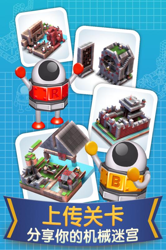 「机械迷宫」是一款3D益智解谜游戏。在以方块搭建的3D迷宫中,玩家要通过控制呆萌的机器人,闯过重重阻碍和机关,抵达每一关的终点。游戏画面精致,关卡设计精巧,轻松舒缓的音乐给玩家无比惬意的感觉。游戏含有50个解谜关卡,同时将支持关卡编辑器让玩家自行创建关卡。完成主线仅仅是开始,做好烧脑的准备了么?