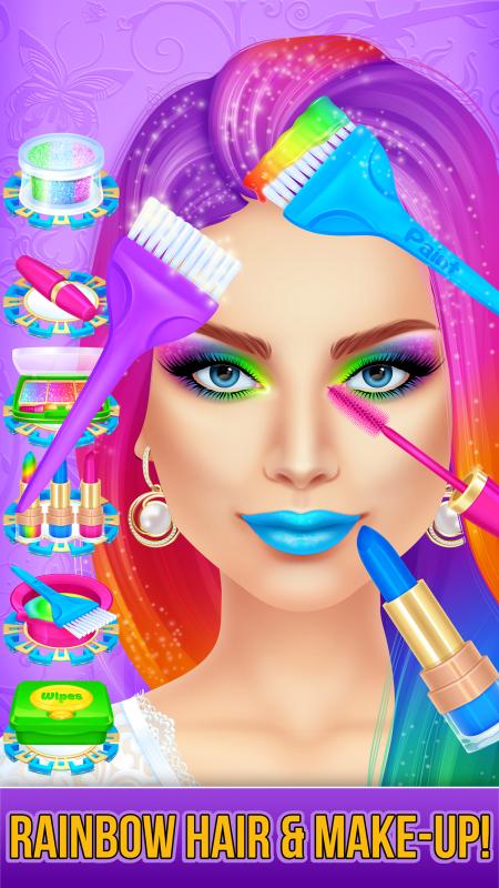 Level 1: Rainbow make-up and hair style fashion salon makeover!
