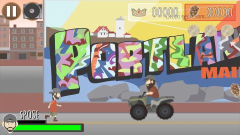 《Spose:缅因州国王》(Spose:King of Maine)是一款魔性画风的跑酷游戏,玩家将扮演主人公Spose在缅因州上寻找他的新专辑《祝你好运一生》,你需要找到“PDank”硬币来解锁歌曲。游戏中,玩家通过跳跃来取得物品和躲避,还可以扔鞋子击倒各色路人来获得分数。喜欢此类游戏的玩家快来下载这款《Spose:缅因州国王》体验试玩吧!