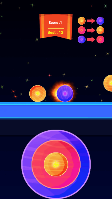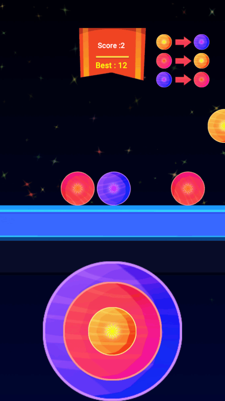 简单的游戏! 释放三色球球! 黄球克紫球 粉球克黄球 紫球克粉球 记住这个规则,来玩这个简单的游戏吧! 颜色一样?你会输哦! 你能打出多少分呢? 游戏特色: 简单,好玩。 任何时候,任何地点,你都可以Press!