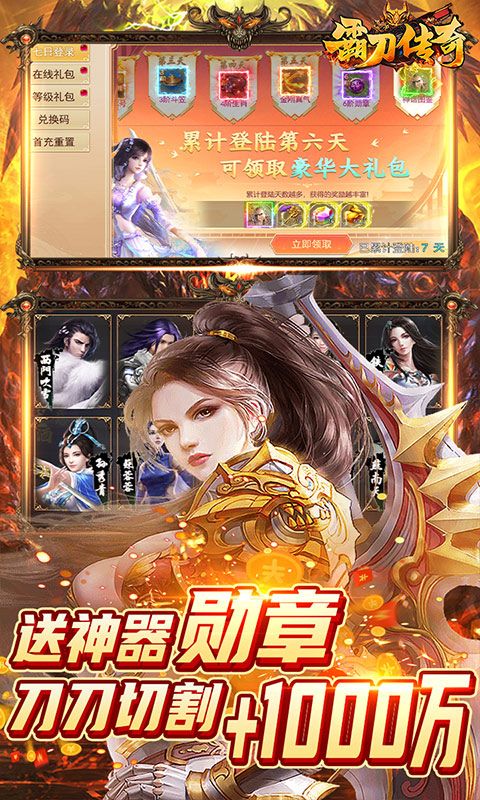 《霸刀传奇》上线送SVIP1、限定称号、100万铜钱、全套50阶装备。送百年魂环,刀刀切割伤害+10%!送神器勋章,刀刀切割+1000万!送自动回收,挂机解放双手!超爽百倍爆率,BOSS必掉红包,装备全靠打,充值全靠爆!