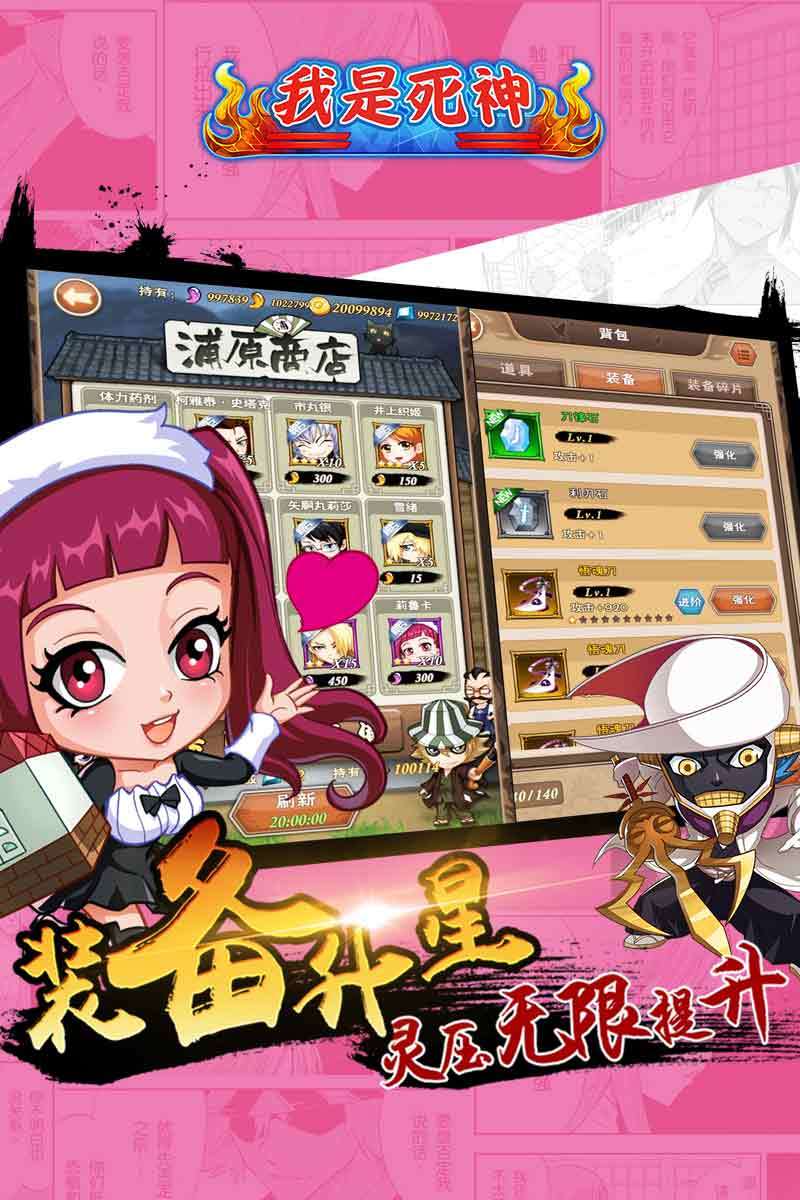 重铸斩魄刀,血战尸魂界!国民级正版动漫手游《我是死神》今日卍解公测!紧贴原著剧情,完美再现千年血战!人气角色黑崎一护、露琪亚闪亮 登场,死神、灭却师自由组合并肩作战,觉醒宿命的羁绊,私人定制属于你的死神梦之队!更有最强番队长争霸,引爆尸魂界巅峰对决!这个冬天, 用斩魄刀唤醒你的死神之魂,用热血为死神正名!