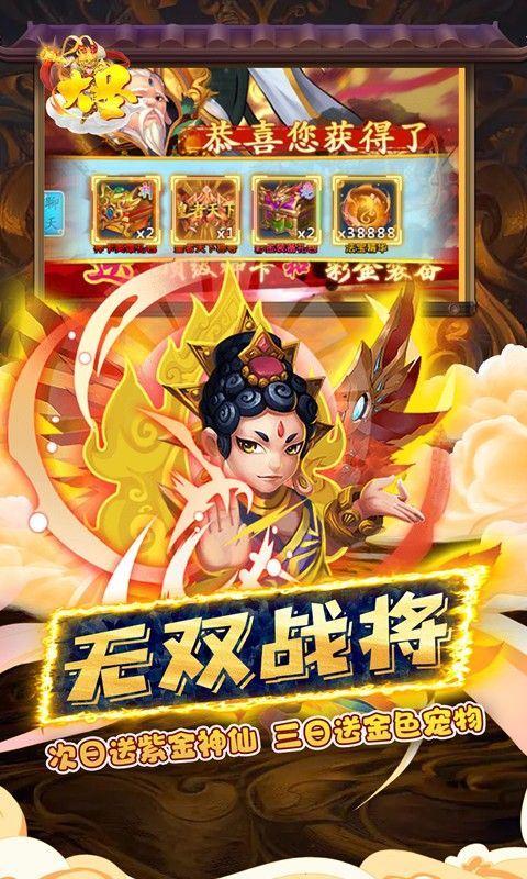 ★免费激活首充大礼,可获得强力彩金将[齐天大圣]