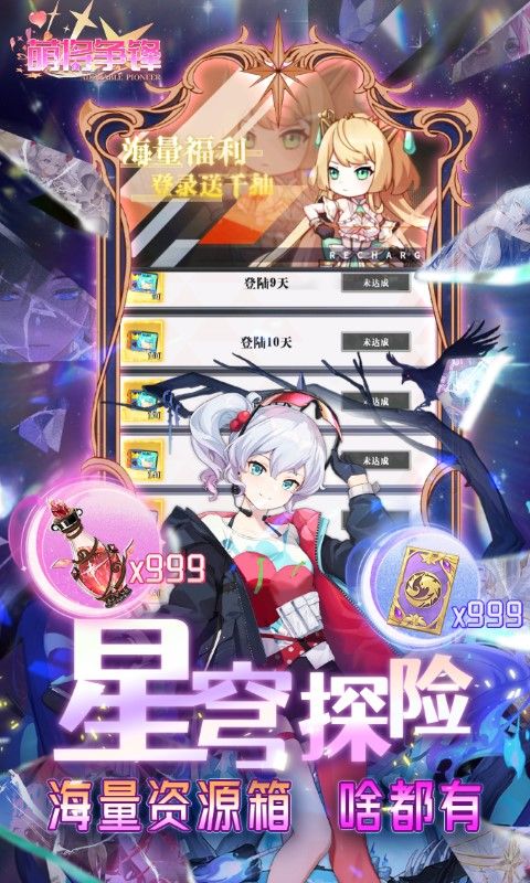 星星啊,快来看看这款《萌将争锋(啊?夺少?0.1折)》吧;次时代全新二次元挂机大作,已然问世;全场永久0.1折,648秒变6.48!!上线送超级大C十星【陈陈子】直接砍翻全场,无限十连抽,铸就绝世英雄海;天天登录领福利8000抽等你来取,直接爽爆;星穹探险拿宝箱,宝箱福利有猛料;星穹特权直接激活,刷充提额双管齐下,直接体验至强完美开局!