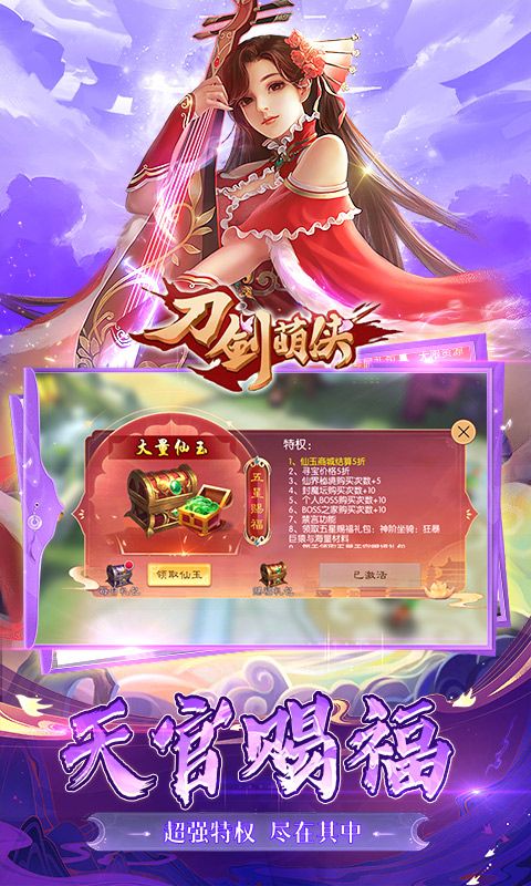 ★天官赐福特权,一次消费永久变强,各种超强特权尽在其中,多倍材料掉落特权,多倍BOSS掉落特权,购物、寻宝折扣,无限铜钱等等,你想要的全都有;
