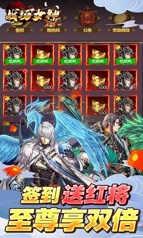 ★福利三:签到送红将,升级送充值红包,可激活部分充值活动