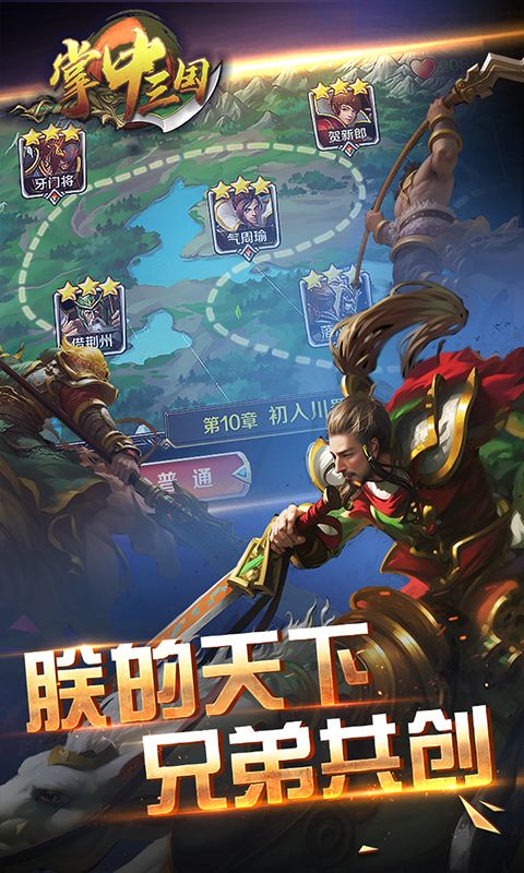 《掌中三国》一款正统三国背景的多角色动作游戏,游戏将指向性技能与角色必杀要素有机的融合,以人物合体技表现英雄之间的深度羁绊。远古时代神龙生九子,交替往昔以保天道,东汉末年,天道失衡,九子同临,致使天下大乱,玩家接受守护之龙椒图的引领,穿越三国乱世,与传世名将绝代谋臣一同回复天道,匡扶天下,在这里你将与三英共战吕布,与卧龙凤雏公话天下大势,与周郎一同在赤壁阻止曹操的野心!
