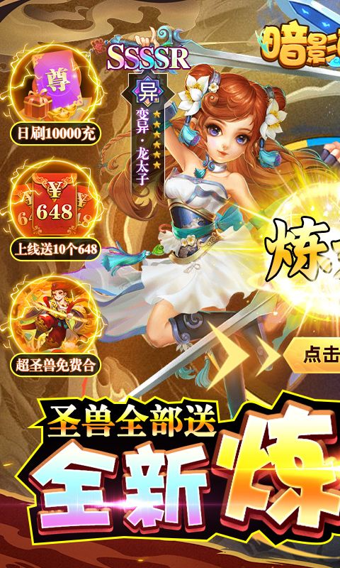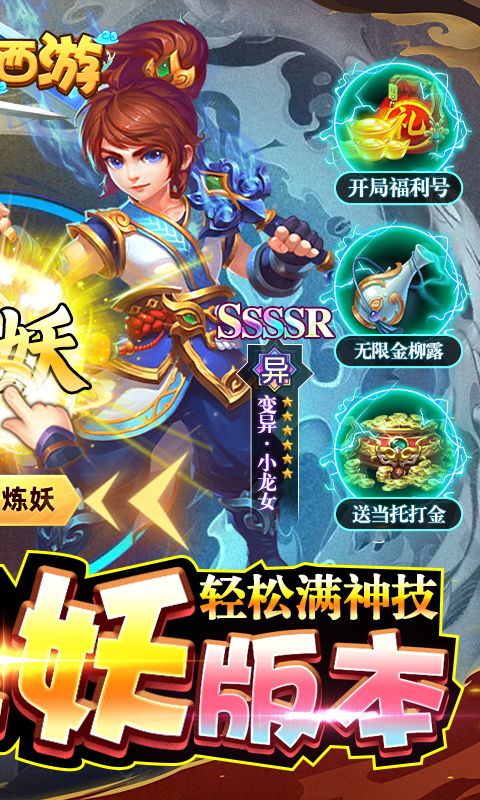《暗影西游(无限炼妖满神宠)》是一款经典的西游题材的回合制H5手游,游戏开局送GM修改器,通过闯关,打怪获得欧皇真充卡来进行充值,破解超值首充礼包,现金点充值直接拿到游戏内所有满技能神兽,华丽的特效时装,加上超爽的神兽培养体验,带你感受开局即毕业的爽快体验!