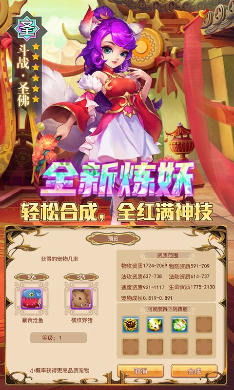 ★更有无限合宠系统,两个宠物相互融合,随机出一只全新的宠物。神兽圣兽通通收入囊中。