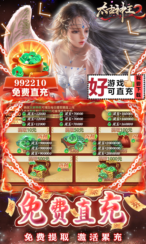 ★创角解锁海量内部福利,打金效率100%,太古炫酷时装包,万元真充卡礼盒,500元真充卡,500钱包余额,100000000金币,豪礼立享;