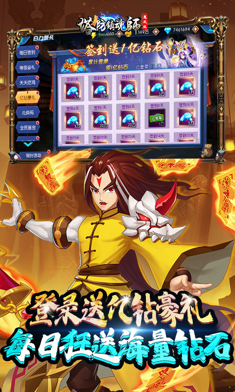 ★【第9重】:创角即送直升VIP20、GM魔改器激活卡、激活魔改刷充、18.8万钻石、千万铜钱、绝版称号!