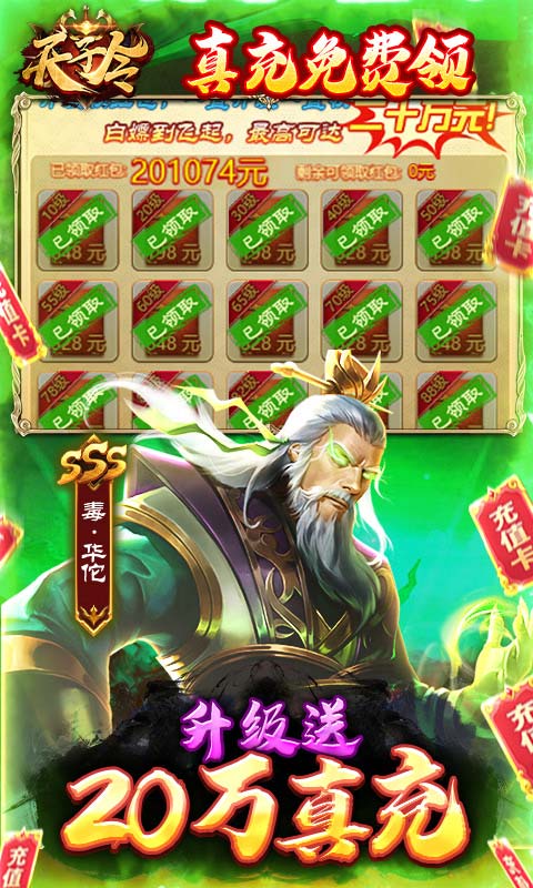《天子令(送20万充分十亿)》经典三国携超强福利震撼回归,超高福利超爽战斗倍速,让你拥有不一样的游戏体验。升级领20万元真充,真充卡可激活线下永久累充活动,并且可以解锁全部GM商城!独创新玩法超级宝藏,免费瓜分百亿元宝,奖池不间断,无限瓜分百亿元宝!登录签到免费领取海量道具,领到最后应有尽有!玩家在游戏中化身为主公,招兵买马带领众多名将征战四方结交天下英雄,还有机会与当世美人结缘,一统天下功成名就。完美还原了三国战争场景,权谋战略之间的较量,风起云涌,号角吹响,率领大军参与国战,攻城略地,在战乱中建立自己的势力,定天下以安民心。