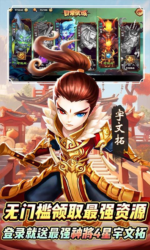 ★七天登录送4星神将宇文拓,免费领取高阶战力牌面当担!
