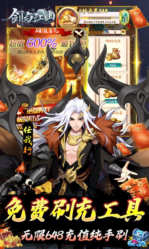 《剑与江山(额度无限提充)》国创武侠奥义对决手游大作,开局送十万真充,GM现金点提充代替真实支付!游戏以恢宏的大武侠为世界观,创新的武功对冲战斗系统,战前技能自由搭配、加上战中即时法宝操作,兼具策略性与打击爽快感。良心策划不顾老板阻拦,坚持开局就送给玩家免费直充648的劲爆福利,能充多少全看玩家手速!不怕额度被你点完,只怕玩家点到手软!游戏内的累计充值奖励统统能通过免费直充来激活,失传绝世功法、武林至尊神兵尽在掌握,海量元宝、银元、强化材料拿到包满,让您体验到创号即毕业的畅爽快感。躺着就能领红包,一直白嫖一直爽。快来玩《剑与江山(额度无限提充)》,海量福利领不完,仗剑江湖决胜天下!