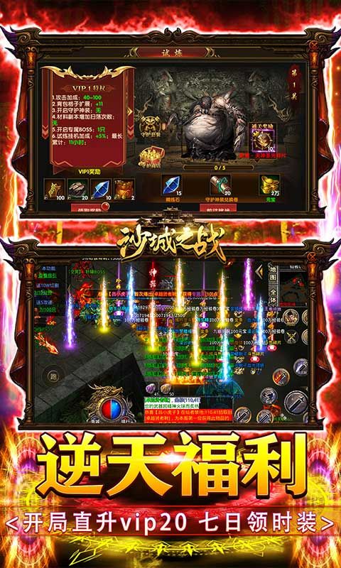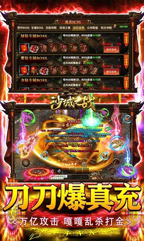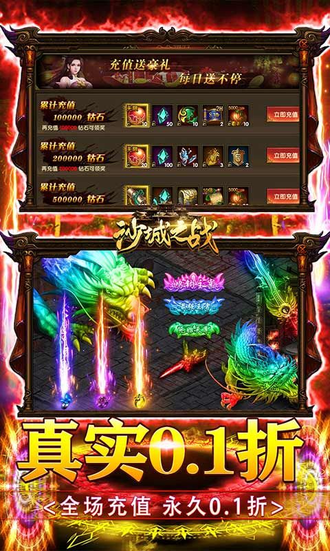 真打金传奇《沙城之战》是一款就u额色扮演类传奇pk手游!闯关厮杀战胜强大的对手!热血的即时竞技为你带来超爽体验!绚丽技能秀翻全场!完美重现端游写实画质,万人同屏、热血攻城,无限激战!上线送满级vip20、炫酷时装、500w元宝金币,刀刀切割(称号)、免费领取萌宠月娥仙子!带您回归二十年前的初心热血,全民集结,万人攻沙,为您打造真正的热血传奇!