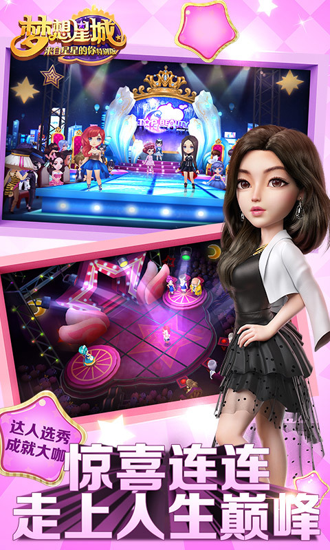 在星城,你不仅能够结识千颂伊、都敏俊等明星大咖,自己也有机会成为星城红人!上百套潮流服饰随心更换,让你在梦想秀、达人榜、超模秀等各个舞台上展现自己的魅力。明星评委坐镇打分,助你你成为星城名人,走上人生巅峰!