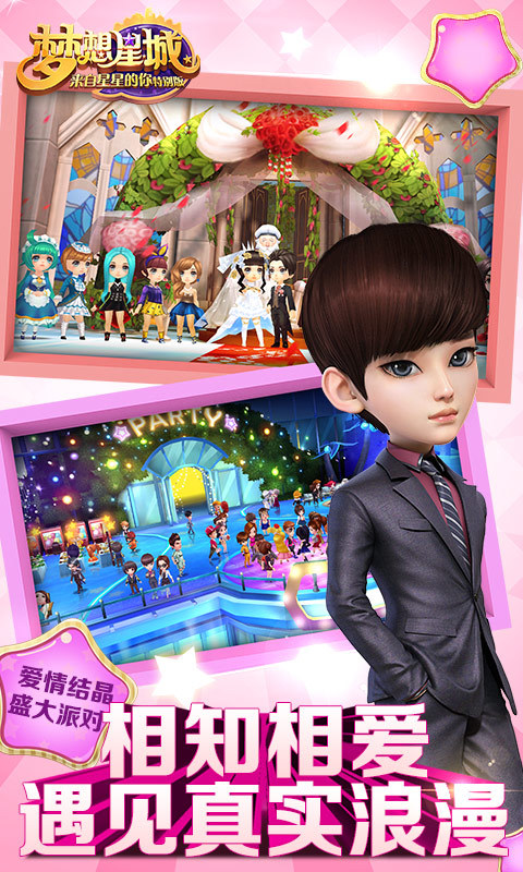 在星城,你不仅可以和志同道合的小伙伴组建俱乐部,举行狂欢派对,更可以与你心爱的那个TA一起走进婚姻殿堂!举办结婚派对,身着华丽神圣的婚纱礼服步入殿堂;在亲朋好友的见证下宣告爱情誓言,热吻拥抱。