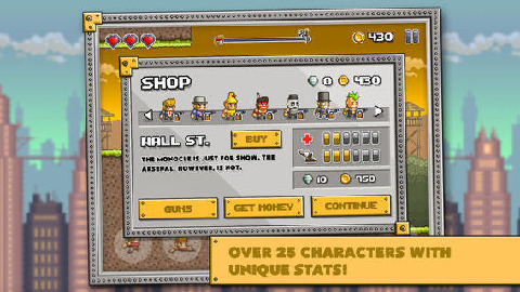 《随机奔跑者 Random Runners》是一款横版闯关游戏,作为《随机英雄 Random Heroes》续作,无论从游戏名字还是游戏风格、玩法上,都跟《随机英雄》非常像,如果你也是《随机英雄》的粉丝,这款游戏就不得不玩啦!