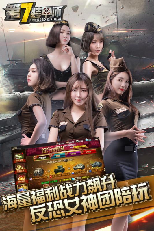 全球首款反恐坦克手游,战争玩家首选《第7装甲师》震撼来袭! unity3D高度还原现代战争,逼真至极!酷炫合击战斗画面,全屏燃爆!四国阵营相杀相克,策略升级等你来战!呼朋唤友协作围剿,实时真人PVP,奖励丰厚拿到手软!海量福利,战力飙升傲视全服,军衔成长号令三军,坐享权力巅峰!快来建立只属于你的超级装甲军团,探索战争电影里才有的史诗剧情,消灭恐怖势力,维护世界和平!