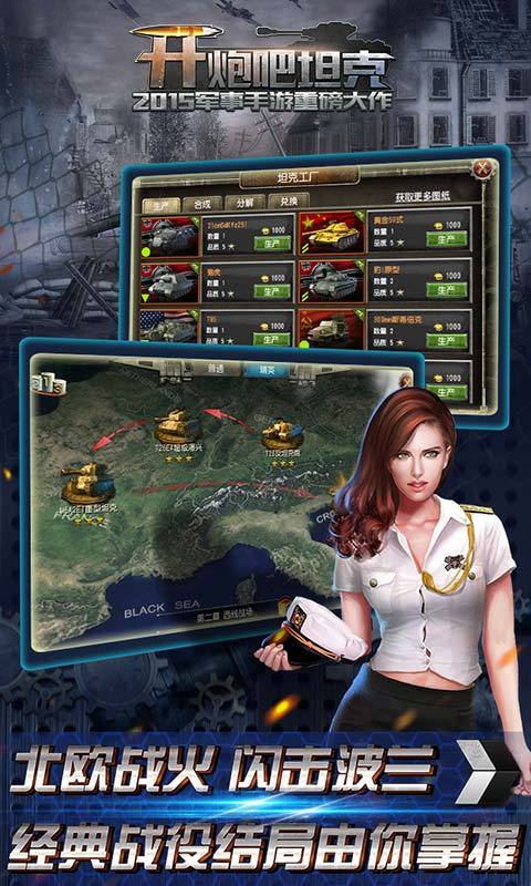《开炮吧坦克》由老牌战争游戏公司雷尚科技强势打造,全超清画面,战斗场景精美,技能效果酷炫华丽,战争感强烈,玩法多样,玩家可以对坦克战队进行生产、升级、改造等操作,打造专属自己的超强战车,游戏适合业余和职业玩家。是策略、养成为一体的重磅战争游戏。坦克大战爆发在即,感受钢与铁的生死碰撞,身临炮火横飞、硝烟四起的经典二战战役,引领坦克部队,击溃敌军,等你来战!为了胜利与荣誉,开炮吧!坦克!
