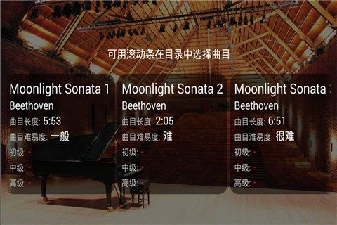 《钢琴大师完美版》是一款情趣独到的绿色音乐游戏。游戏方式是当音符下降到琴键上方的水平线的时候,按下对应琴键,便可弹奏出美妙动听的音乐。喜欢钢琴的朋友们可以在这里展现自己的舞台哦,很有趣呢,快快来体验一下自己的钢琴技术吧~更多参与,更多快乐!