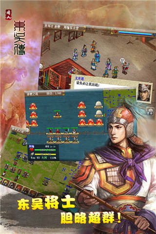 《三国志东吴传》是一款考验玩家策略的经典三国题材战棋游戏,为玩家开启全新的三国时代。玩家将扮演三国东吴豪杰孙权带领三国猛将谋士西联刘备,北抗曹操,驰骋疆场,开拓疆土。