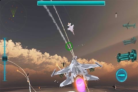 逼真的天空环境,激烈的空战打击感,全重力感应操作,F-16,F-22,J-20,F-35等一流战机任你挑选,喜欢空战的童鞋们不要错过哦。