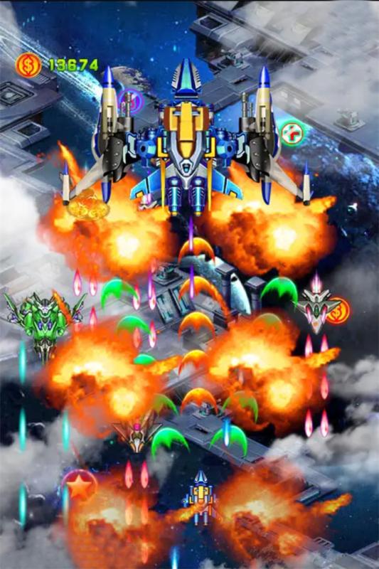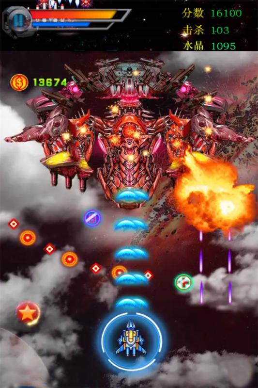 雷霆战飞机大战是一款画面炫酷的飞行射击游戏,游戏中融入了经典的飞机大战元素,超强高清画面,体验酷爽的华丽BOSS战。玩法:按住屏幕滑动可以移动战机;手机能量水晶可以强化战机;获得道具可以升级武器。