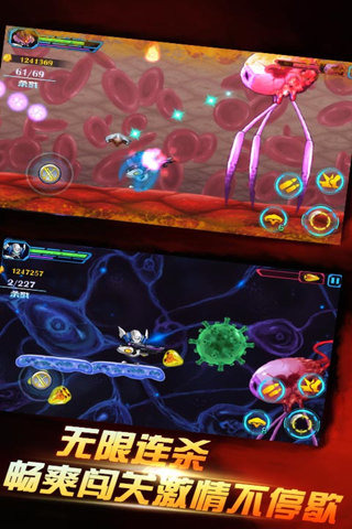 《消灭埃博拉》是一款以埃博拉病毒爆发,纳米机器人进入妹子体内消灭病毒为背景的横版动作射击游戏游戏。游戏采用关卡模式,开放不同病毒怪物以及强力武器,充满激、情与挑战的战斗玩法,少年,妹子和世界等待你拯救。独有的双武器系统,随时随地的切换!携带装备,提升战斗力,打出爆发伤害!多种护甲形象,为你提供不同防御策略!每日登录奖励活动关卡消灭脂肪,轻松得完美!利用地形优势,满血消灭怪物及BOSS!