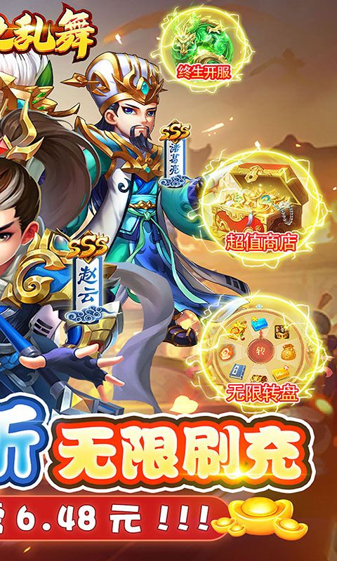 千万三国迷力荐,全新0.1折扣Q版三国策略卡牌来袭!!!《三国之乱舞》是一款集养成与策略一体的三国卡牌slg游戏。上线送极品武将,海量材料免费领取,通过对自身武将的培养,宝石、装备等一系列增加战斗力物品的收集,在不同势利的对战中可以通过武将、兵种、团队配合进行战斗,充分发挥大家的谋策战略,拥有不一样的游戏体验。从而逐渐成长成一位可以影响大局的存在,等你来挑战哦~