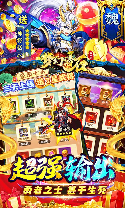 《梦幻诸石官方版》全新Q版三国卡牌来袭,全场充值永久0.1折,1元可抵100元,648元仅需6.48元;登录即送强力回复辅助小乔,登录2天送赵云,3天送刘备,4天送孙策,5天送司马懿,6天送曹操,7天送吕布;累积登录再送海量红晶,还有海量抽奖券等你领;快来称霸三国!
