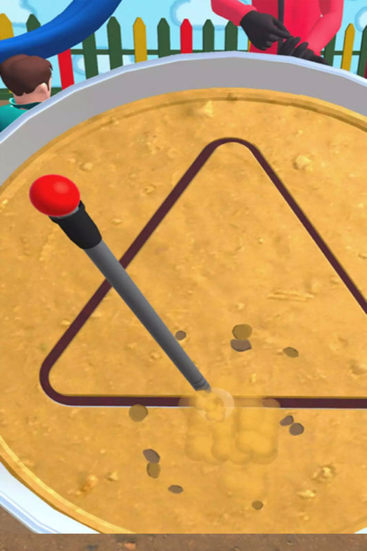游戏模式二抠糖饼:在限定的时间内抠出一个完整的糖饼形状,千万不能抠碎,鱿鱼游戏规则你懂的,一旦出错就出局!
