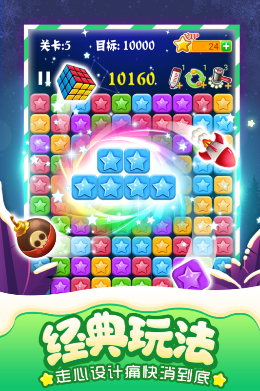 消灭星星系列全新之作!在全新版本中,消灭星星全面升级,画面UI大大提高,更多新玩法全新加入,消除体验全面更新。在经典玩法已经取得了巨大成功的基础上,研发团队新增了多种消除模式。
