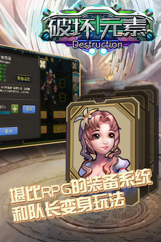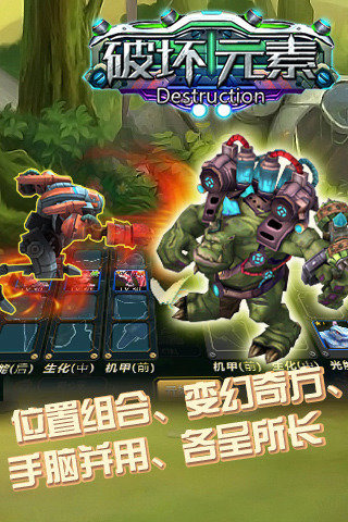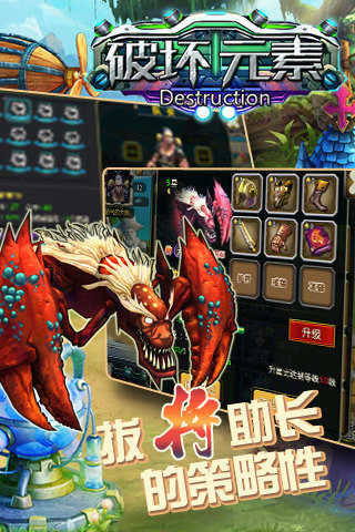 手游《破坏元素》根据原创故事《毁灭的力量》改编。是一款集合动作策略和角色扮演的网络游戏。游戏的核心是主要以培养队长和将领为主,同时结合了SLG和RPG的成长体系。在SLG游戏中大量加入了RPG玩法,如强大的装备系统和队长变身系统等。游戏中将领在战前布阵的位置摆放,以及将领的“觉醒技”之间的相互克制,是战斗的核心玩法。而游戏的战斗模式,采用了回合与及时同时进行的创新模式。前中后三军为自动回合制战斗模式,而将领采用手动及时释放“觉醒技”战斗模式。这样的创新设计,可使玩家既能体验战斗的打击爽快感,又能体验不同英雄组合在不同位置搭配带来的策略性。虽然功能强大,但是玩家上手相当容易,操作简便易懂。 版本:2.2.65 完美了昨天(5.20)测试的BUG