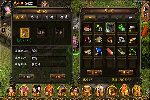 故事为明朝正德年间,朱厚照化名朱寿带兵平定,玩家扮演各路豪侠从旁协助。正德皇帝设办的皇城争夺战,以便操练军队稳固皇权。角色养成、装备收集、物品强化、公会团战、副本刷宝、野外PK、论剑战场等玩法。保障华丽画面前提下。适配手机等设备范围广,发热低、资源消耗低。