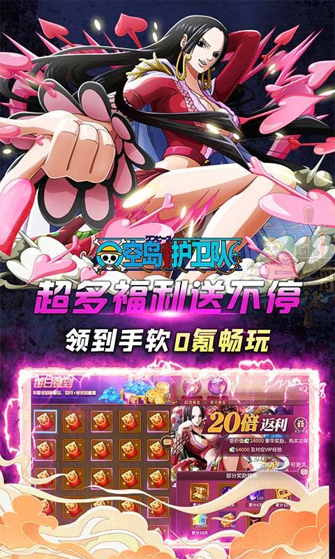 《空岛护卫队(首续0.1折)》是一款航海王题材的卡牌福利放置手游,游戏内充值统统0.1折!游戏力求还原伙伴的技能设定和华丽特效,为玩家带来酣畅淋漓的体验,PVP竞技场放肆开打,在游戏中,你还可以收集超强力伙伴,自由探索奇幻海域,体验还原的沉浸式航海世界。出发!航海王我当定了!