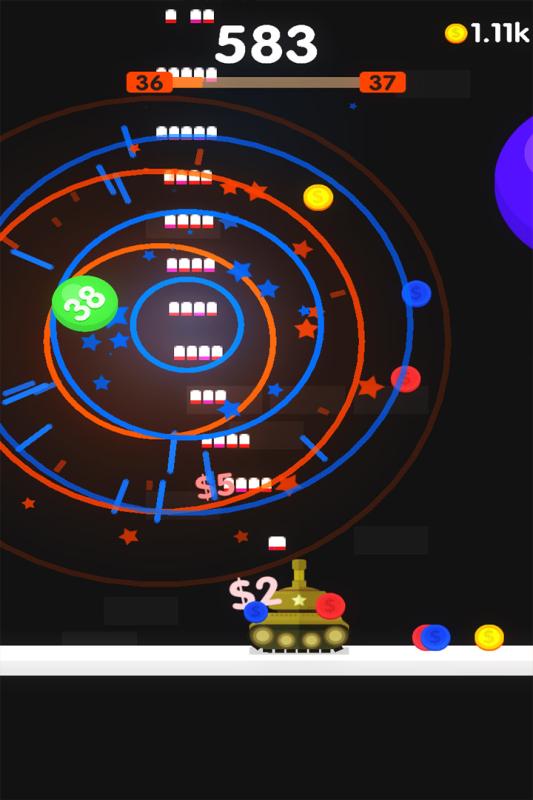 玩家需要控制一个向上喷射的炮台,通过弹出小球将标有数字的砖块给打破!