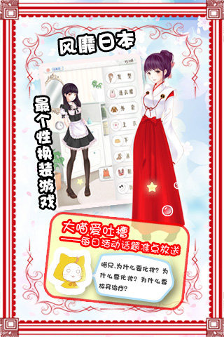俏皮逗趣又馋嘴毒舌的宠物“大喵”可是会很不耐烦地陪你千挑万选呦,它会为你的装扮打分和给出评价,你能不能帮暖暖做到“像五花肉一样完美”呢?