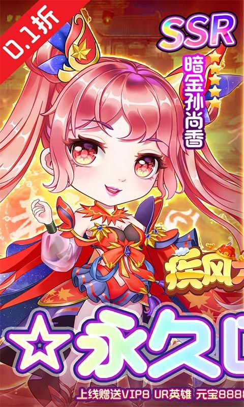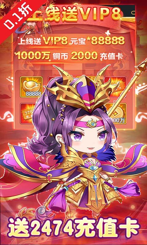 ★创角即送VIP8,2000元充值卡,UR金将,88888元宝,1000万铜币