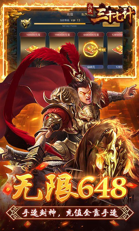 上线无限648!!!首次充值0.1折!!!《兵法三十七计(送毕业毒华佗)》以三国历史为背景,运用计谋攻城掠地。它将三国历史以不同的角度再进行一番演绎。