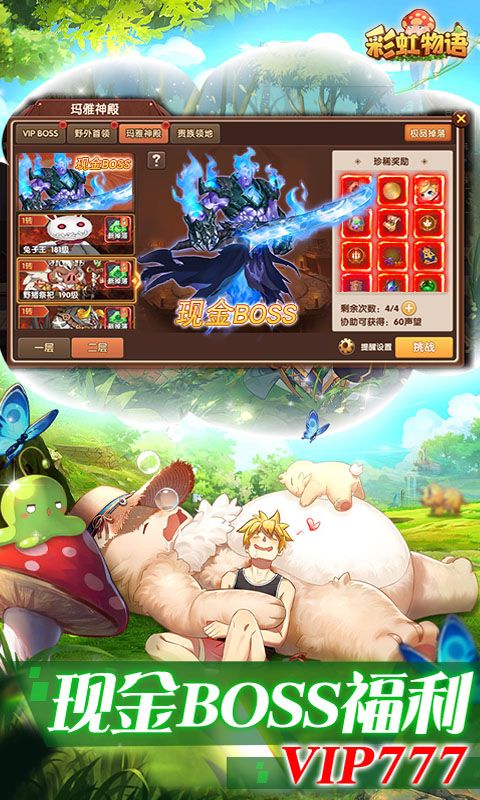 经典题材 横版动作手游《彩虹物语(科技刷现金点)》BT版正式上线!!!《彩虹物语》是一款大型多人2D横版卷轴RPG手机网络游戏。在游戏中,除了体验各种至萌系例的人物角色之外,玩家还可以通过完成游戏中NPC的委托展开剧情,提升自身的属性。这款游戏有着变化无穷的武器锻造系统、畅快淋漓打击感和不断成长的宠物养成系统,搭配清新可爱的游戏画面,变化多样的创意表情和动感十足的技能动作设计,能让玩家仿佛置身于真正的彩虹大陆一般体验冒险的生活。