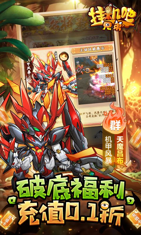 开局送充值0.1折扣号,创角送GM修改器、余额免支付、神将全免、十万真充。《挂机吧兄弟(余额无限代充)》是一款奇趣三国类题材的放置卡牌手游。游戏有新颖的搞怪战斗,并融入了大富翁和随机事件的剧情任务,还有创新的合成资源产出模式,实现了资源的可视化,不仅能策略操作,也能休闲挂机。多维度策略战斗机制,开放自由的卡牌养成系统,并且融合了三合一及大富翁的玩法,游戏涵盖了丰富多元的玩法及体验,无论是策略布阵以计谋取胜的机智大佬,还是挂机休闲想一键收获的佛系玩家,《挂机吧兄弟》中都有相应玩法。