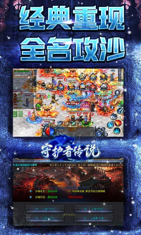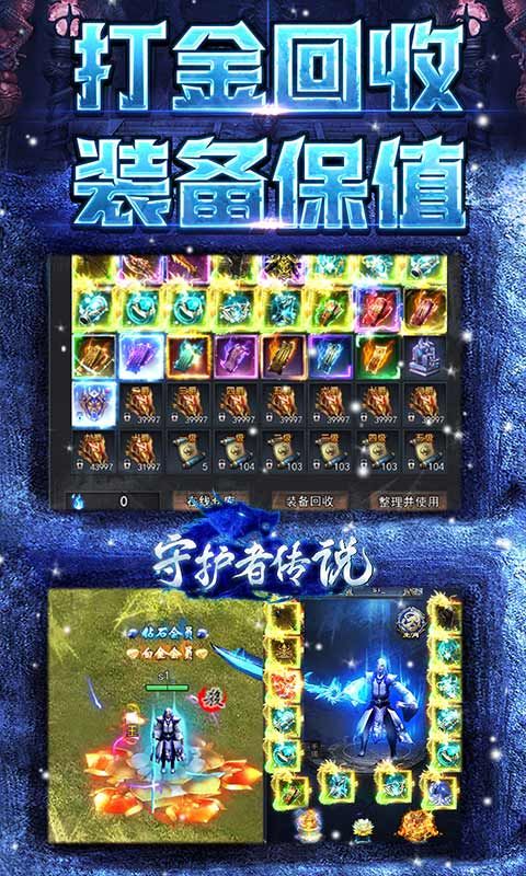 《守护者传说(首款冰雪永久0.1 )》游戏画面清晰精致打击感实足。完美还原冰雪,原汁原味复刻传奇核心玩法,多人BOSS夺宝,血战沙城PK,还原经典传奇场景。本服无任何绑定限制,自由交易,上线免费送自动挂机,一切全靠爆游戏中获得的灵符,装备,材料,打怪均能掉落!!!