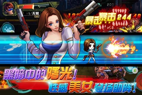 经典横版过关玩法, 打击感爆棚的爽快战斗,帅气无比的双重武技,性感强力的美女同伴,15种武器任你选择,四大特色关卡