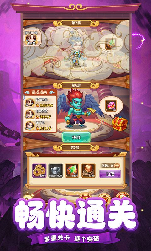 《西游冒险(0.1折版)》是一款全新国风放置策略手游,改编自中国玄幻小说,融合西游等内容,让你随时随地踏入仙途,探索东方神话的奇妙。【经典重现,国风画质】基于中国传统,国韵质感画风,神话色彩渲染,动画角色神还原,构建出一个东方神话世界,带你重回儿时经典国漫世界。【神话角色,轻松养成】集中国神话仙魔体系,玩家可以通过收集养成各路神仙卡牌,自由组合,定制专属阵容。【告别爆肝,佛系修行】日常任务快速完成,专注卡牌养成,竖版操作随玩随停,挂机战斗奖励丰富,真正做到游戏生活两不误。