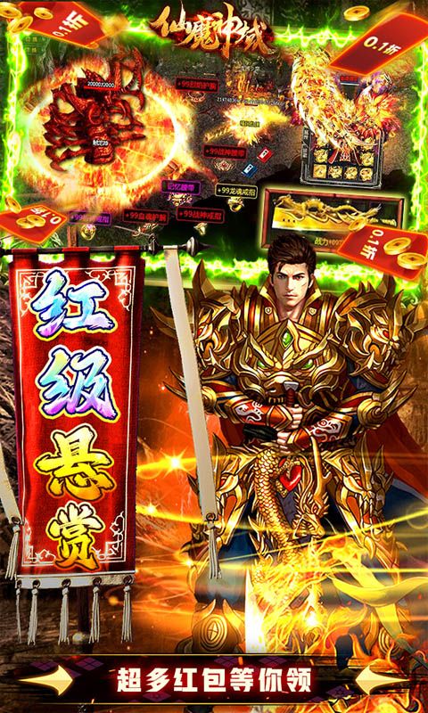 《仙魔神域》充值永久0.1折,免费满GM!上线送满级VIP、永久称号、永久时装、无限刀、自动回收、自动拾取、神器斗笠、神器勋章、1000万元宝、10万金钻。免费满GM,专属资源永久畅买!升级领豪礼,时装红包免费送。红包悬赏大放送,超多红包等你领!