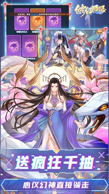 《修仙物语》上线送幻神九尾、通关送满级VIP10。累积登录送UR神嫦娥,流水的主C铁打的辅助,这样美貌动人的嫦娥姐姐你心动了吗?在线豪礼送不停,累计登录免费110抽!疯狂千抽,心仪幻神直接领走!